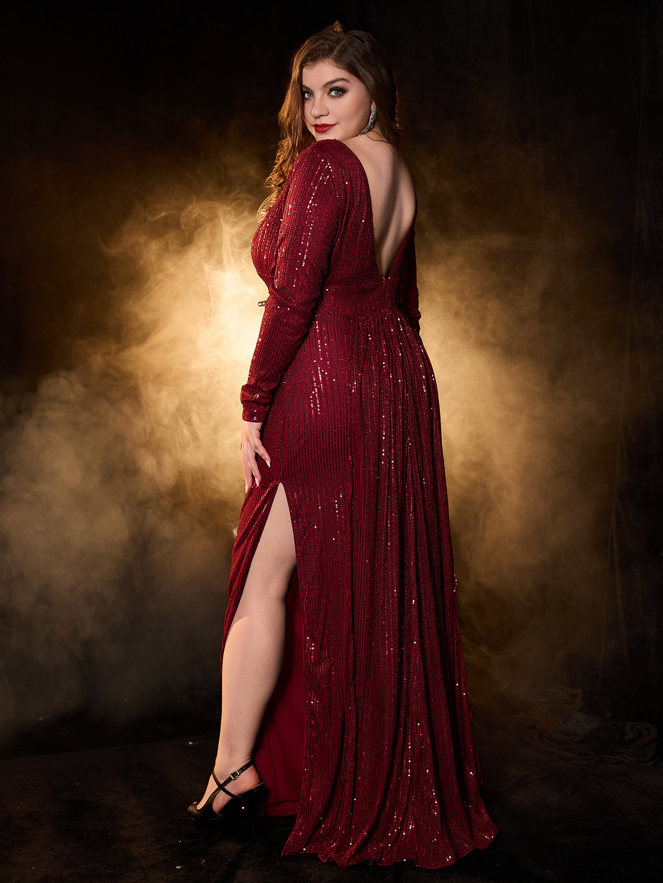Element: Sequin,Zipper,Split,Backless,Ruched